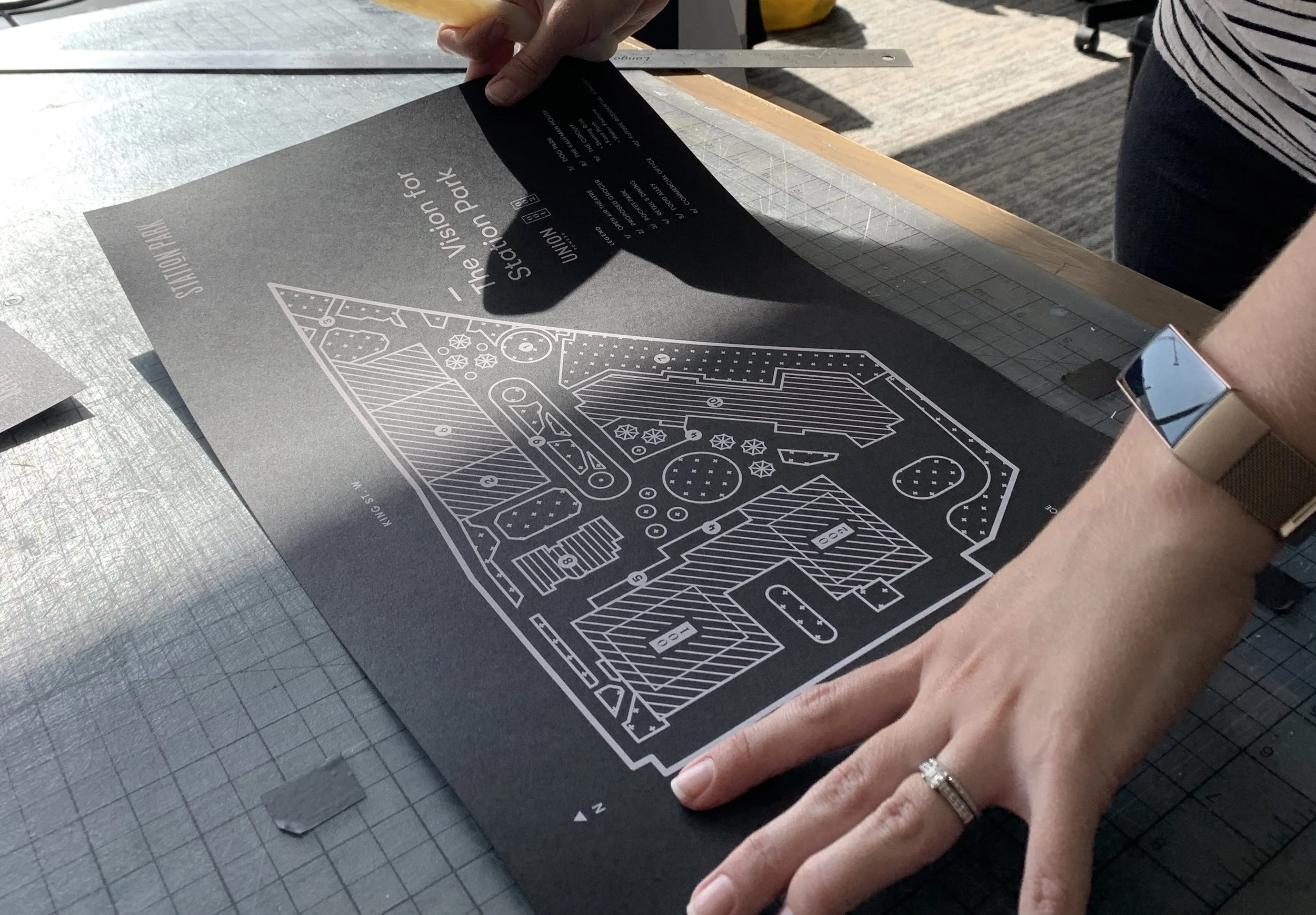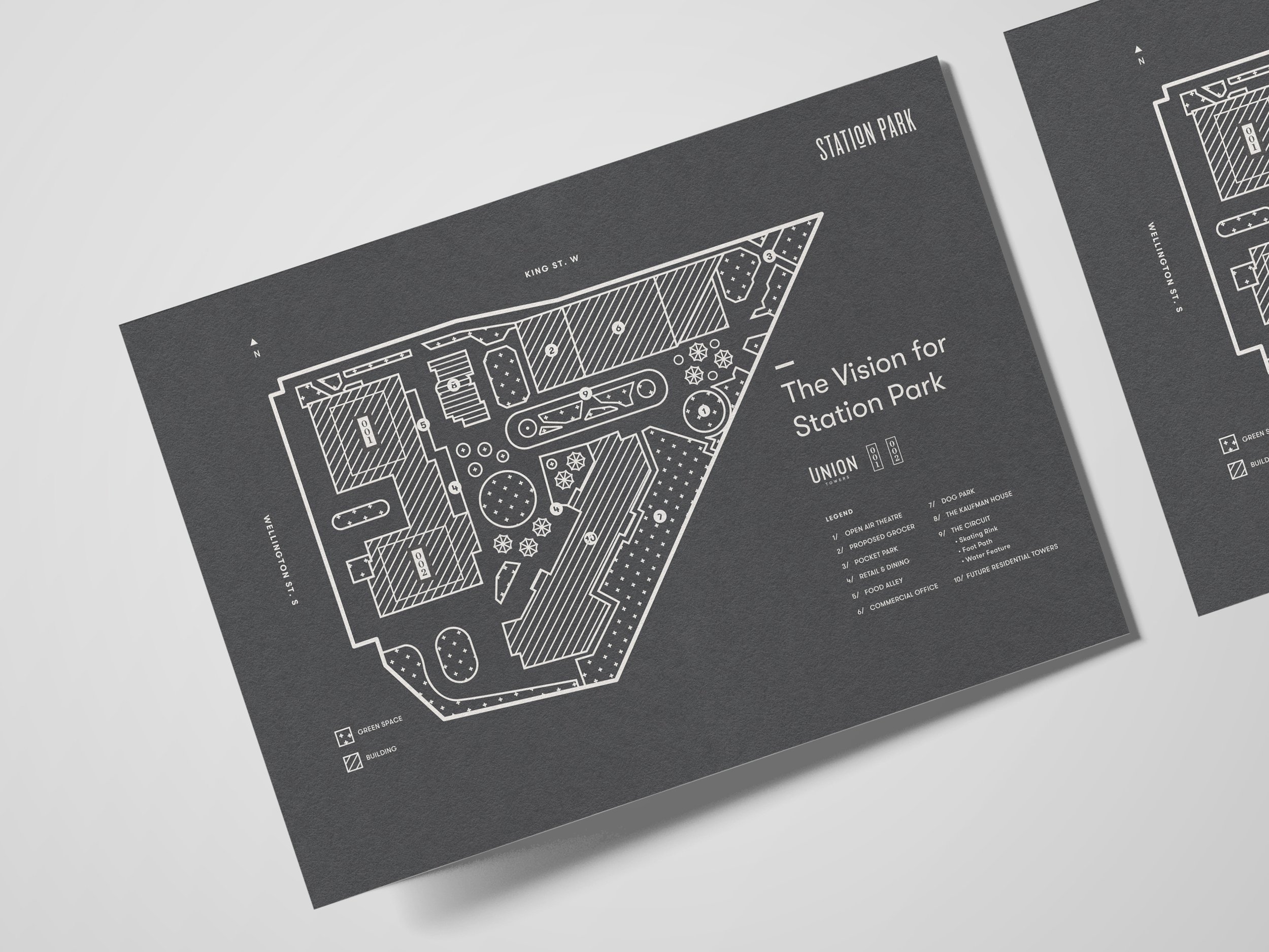 Station Park, Waterloo Region's premier real estate development, stands adjacent to Google's headquarters, embodying the city's heritage while providing a dynamic blend of residences, retail, and commercial spaces. Inspired by what used to be the Berlin Train station, the logo draws from a simplified front view of a train. The iconic "O" glyph is a vital component used throughout Station Park's visual identity by highlighting the diverse amenities such as an on-site bowling alley, arcade and dog park.